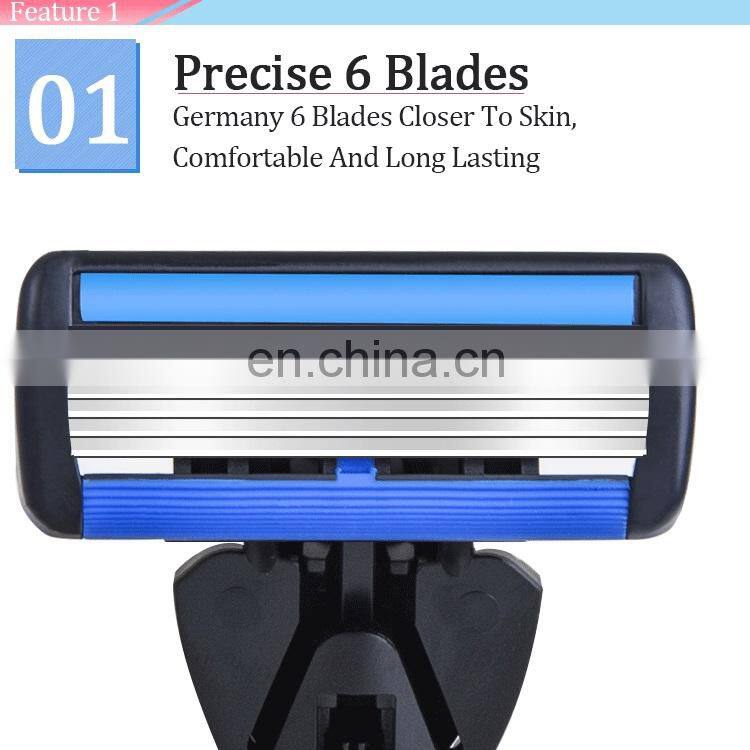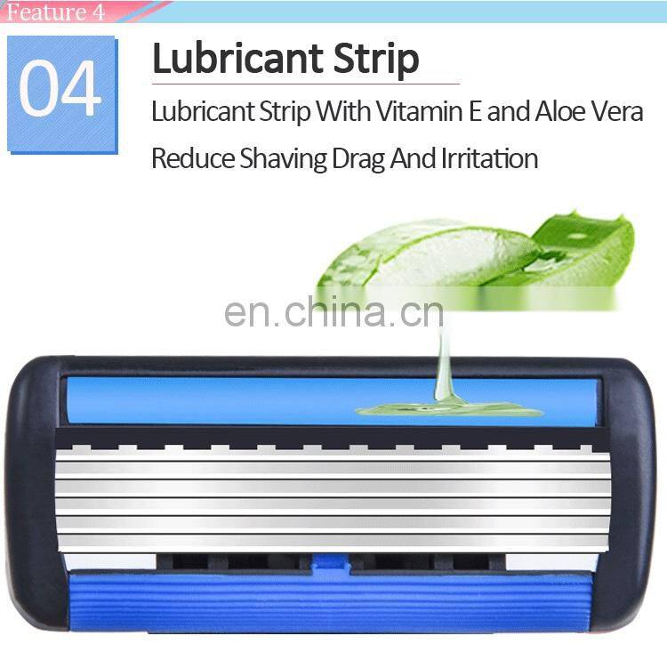 Sharp 6 Blades Men Beard Razor High Quality Germany Blade Stainless Steel Razor Replaceable Blade Cartridge With Lubricant Strip