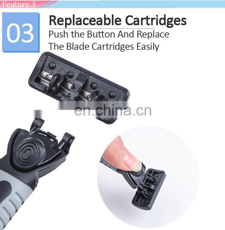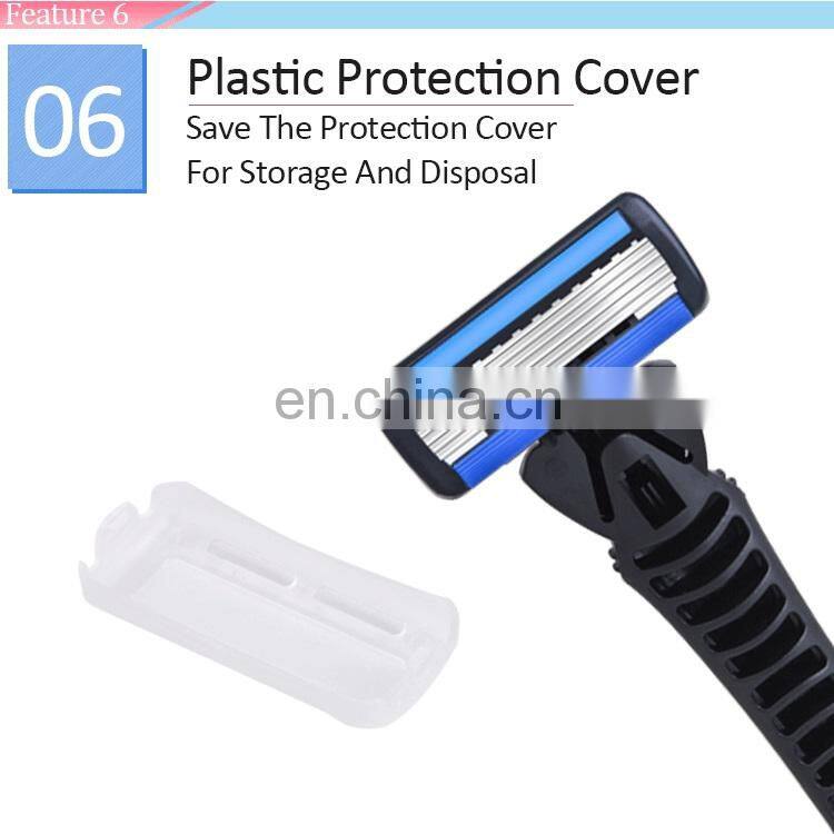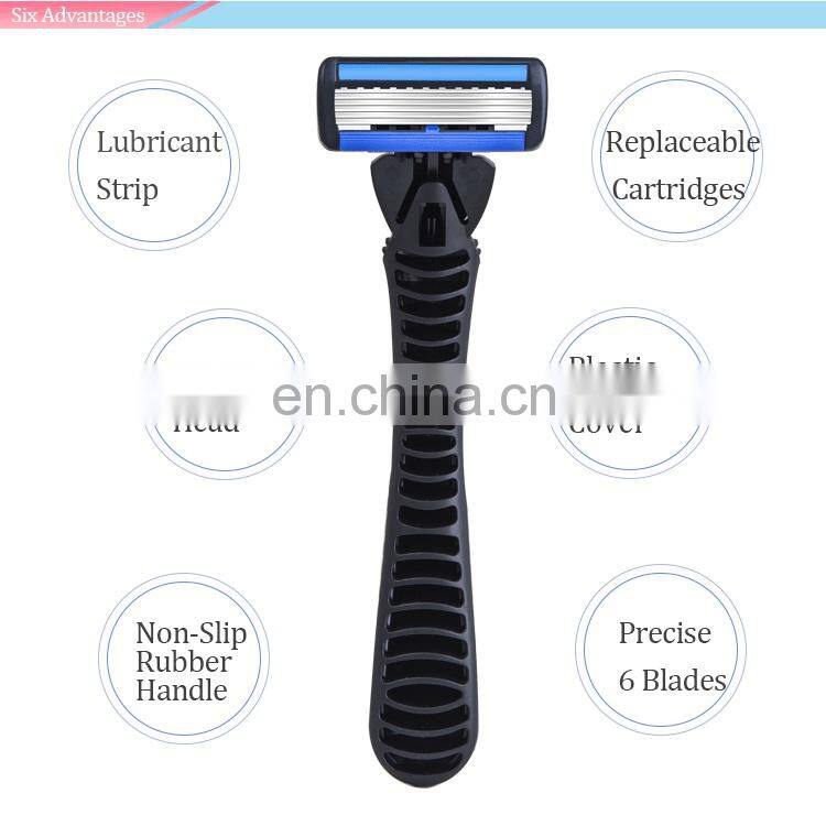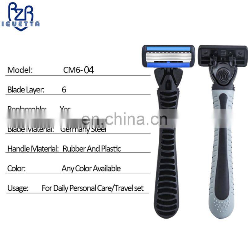 Replaceable Blade Rubber Handle Men Razor 6 Blades Sharp Body Hair Remover With Aloe Strip Safe Hair Cut Blade Cartridge CM6-03