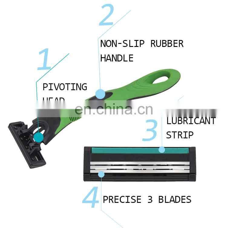 Manufacture Cheap Price Rubber Handle Triple Blade Disposable Shaving RazorNegotiableMOQ: 10000 Pieces