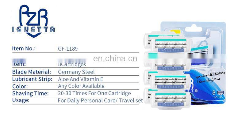 - 8 Cartridges Razor Blades Manufacturers Blister Card Packaging 4 Blades High Quality Germany Razor Blade For Men Shaving GF-1226
