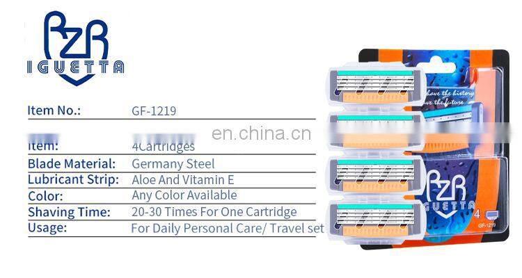 - 4 Cartridges Customized Brand Men Shaving Blade Chromium Coating Durable Shaving Blade Germany Stainless Steel Blades GF-0250