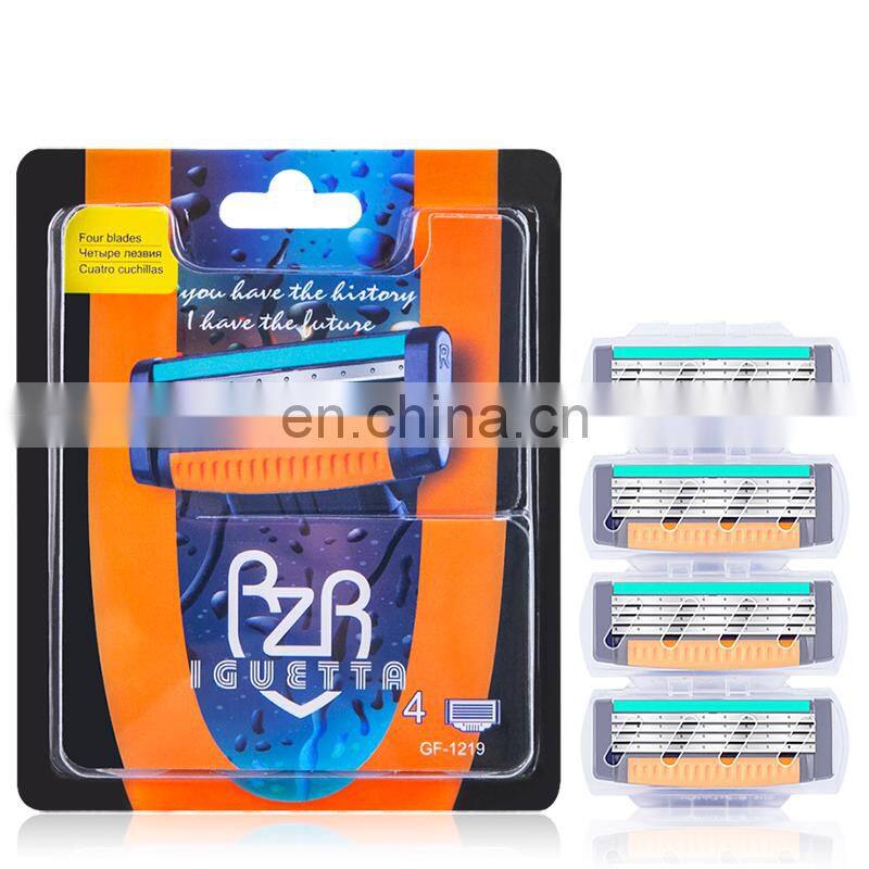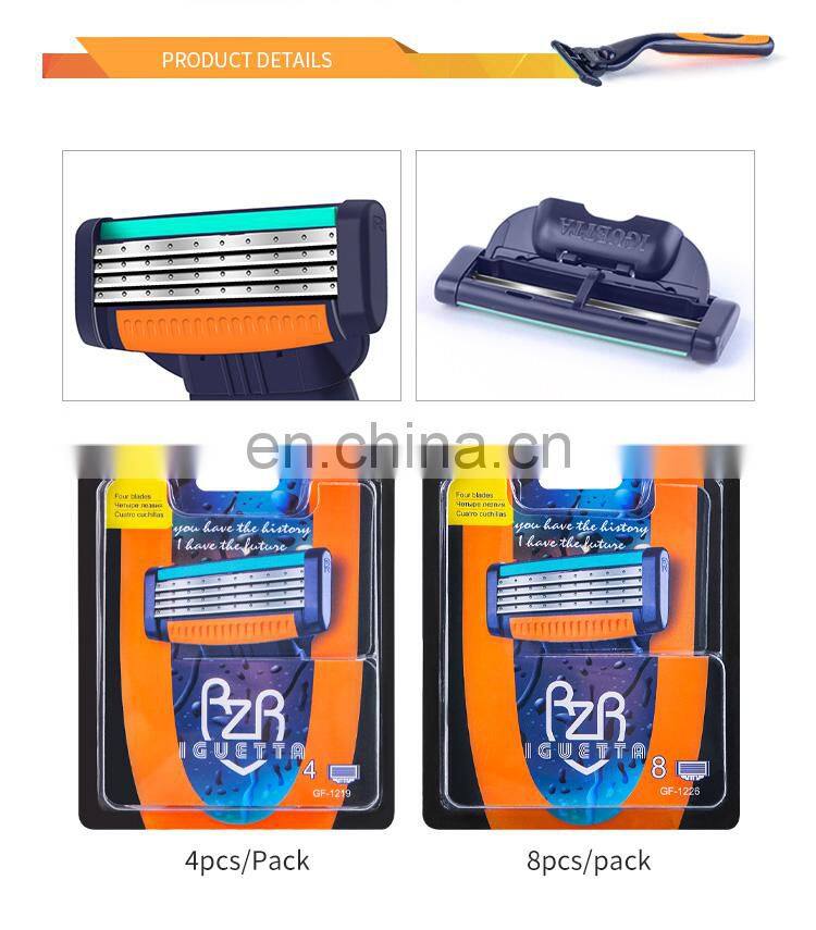 - 4 Cartridges Customized Brand Men Shaving Blade Chromium Coating Durable Shaving Blade Germany Stainless Steel Blades GF-0250