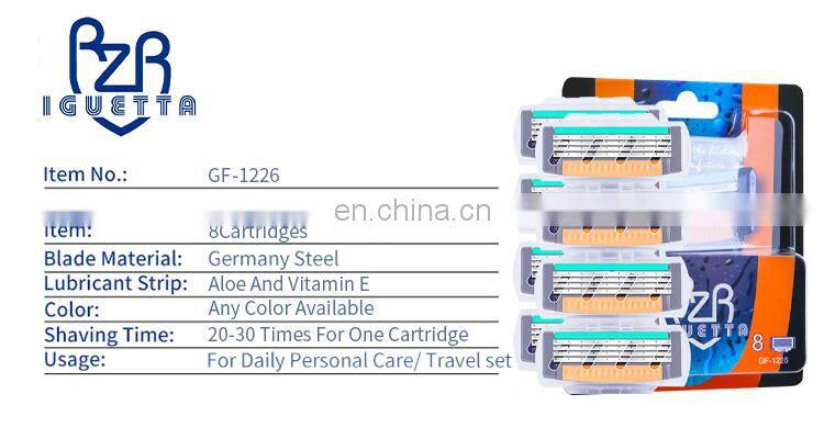 8 Cartridges Razor Blades Manufacturers Blister Card Packaging 4 Blades High Quality Germany Razor Blade For Men Shaving GF-1226