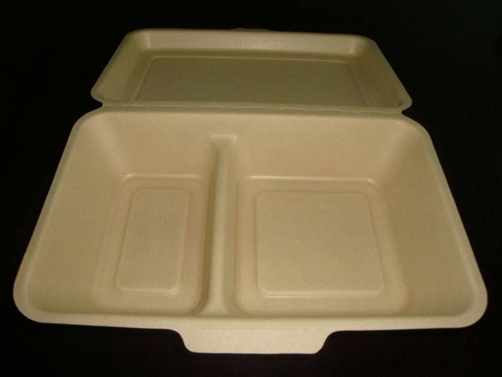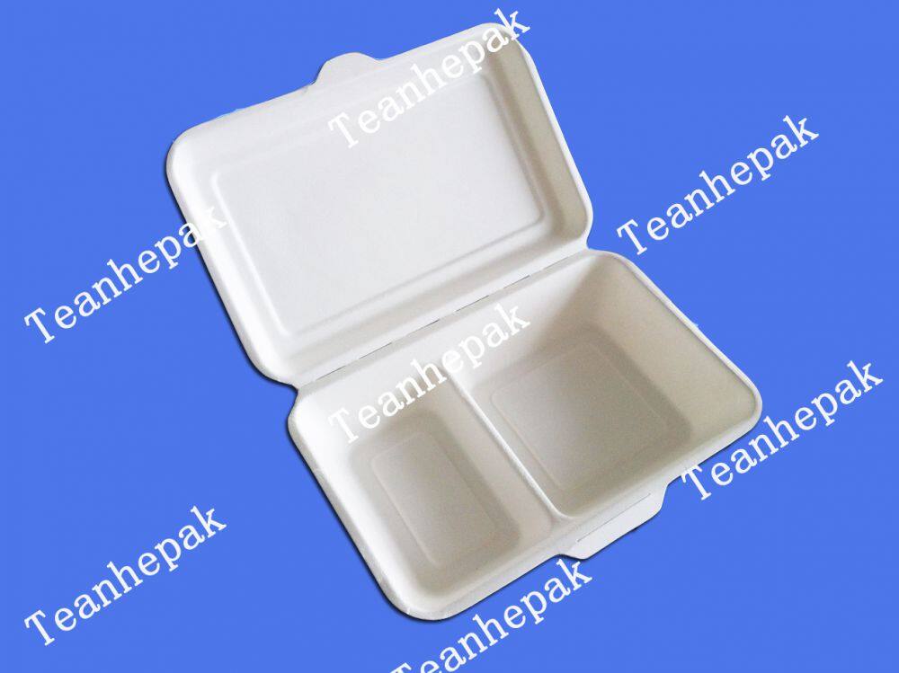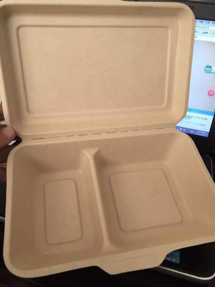1000ml Double Grid Lunch Box 9 * 6 Degradable Environmental Protection Lunch Box Take Out Pulp Bagasse Lunch Box Disposable Lunch Box Single Double Grid Salad Box