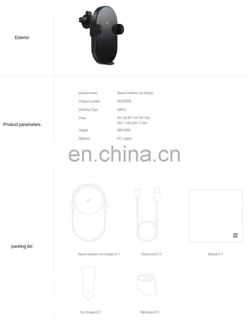 Xiaomi Mi 20W Max Qi Wireless Car Charger Auto Pinch With Intelligent Infrared Sensor Fast Charging Car Phone Holder