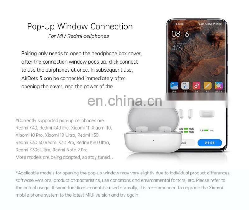 2021 Original Xiaomi Redmi AirDots 3 Wireless Fast Charging Earphone Stereo Bass With Mic Handsfree Mi Earbuds