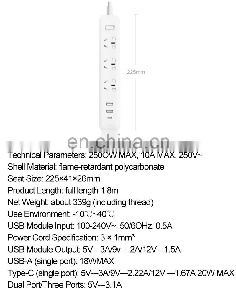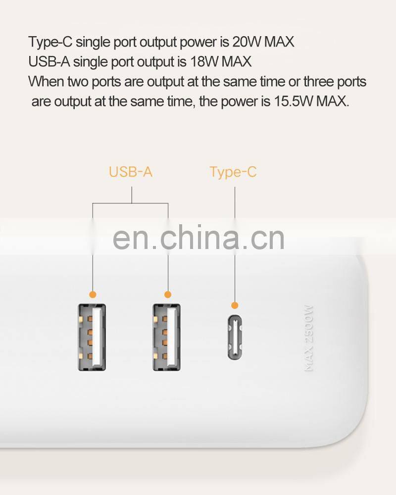 Xiaomi Power Strip 20W Fast Charging Version 2A1C Power Socket 3 Sockets Standard Plug Interface Extension Lead 1.8m