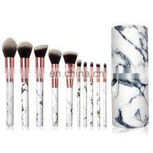 White Marble Makeup Brush Set With Tube Synthetic Hair