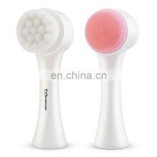 High Quality Exfoliating Silicone Synthetic Head Facial Cleansing Brush Dual Side Synthetic Fiber Face Cleanser