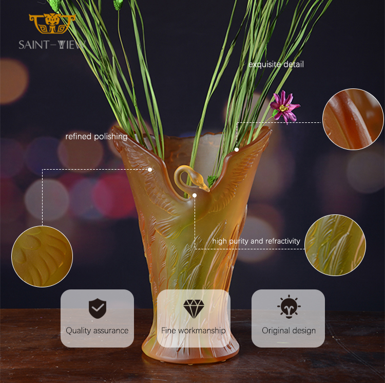 Saint-View is factory directly selling crystal glass liuli by lost-wax casting method, which is also known as pate de verre. Our products including: gift & craft, sculptures, figurines, buddha statues, vases, home decor items, plaque and brick for architecture, etc. We accept OEM&ODM customized production, offer designing, moulding, mass production and fitting solution for personalized cases.