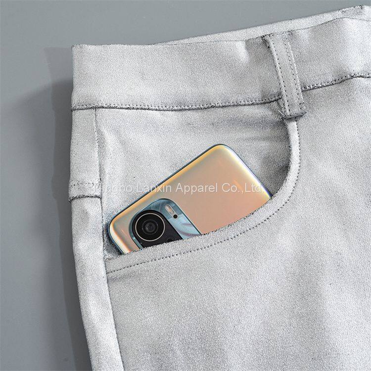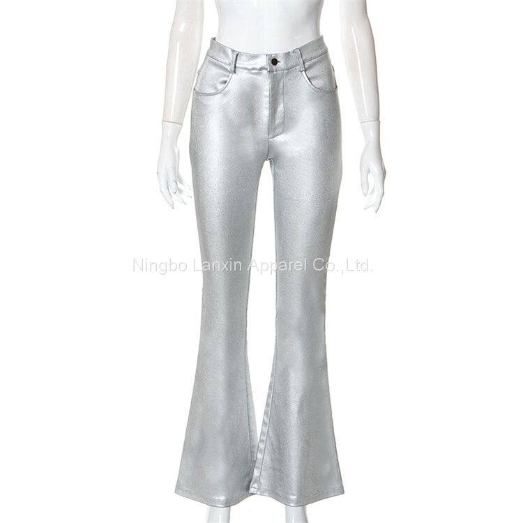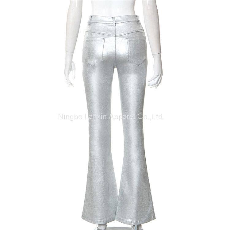 Women Metallic Silver Flare Pant Belted Wide Leg Low Rise Iridescent Flare JeansNegotiableMOQ: 2 Pieces