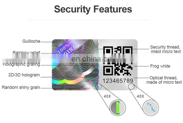 Security Hologram Tamper Proof Seal Sticker With QR Code Printing
