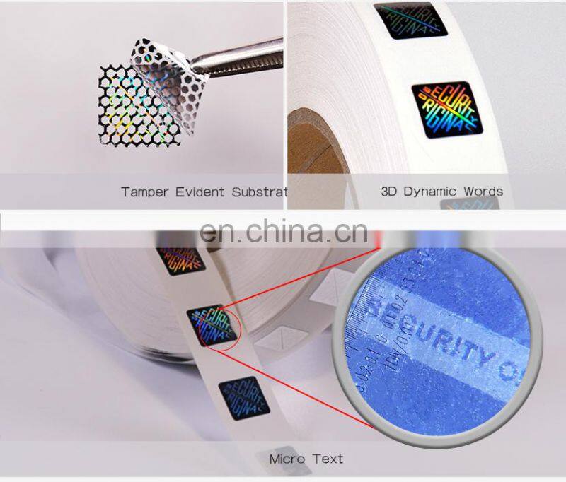 Square Shape Custom Tamper Proof Hologram Stickers With ORIGINAL SECURITY Word