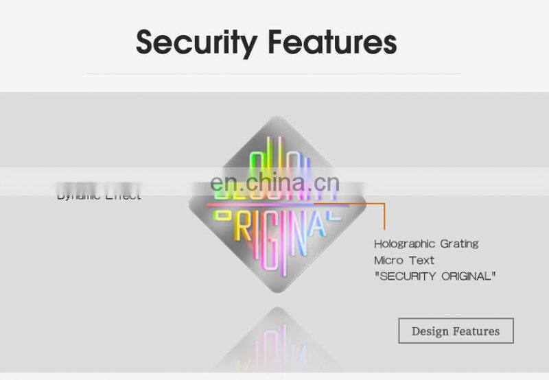 This hologram sticker is printed with ORIGINAL SECURITY word, which can be used for commercial brand & documents security. It combined with overt, covert and forensic security features, effectively fight against fraud and duplicated activities.
