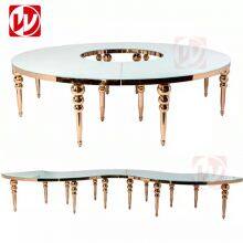 Mirror Glass Wedding Crescent Table Hotel Luxury Gold Stainless Steel Banquet Serpentine Table