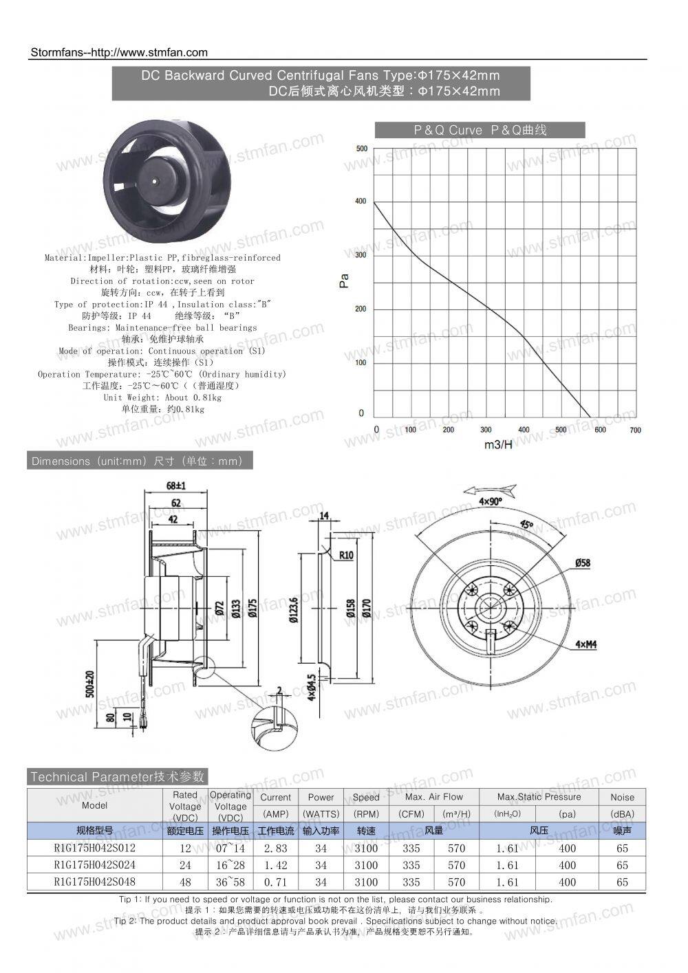 R1G175*42mm DC48V/24V High Speed Industrial Centrifugal Fan