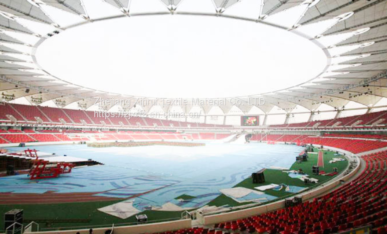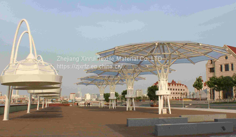 PTFE film material is coated with polytetrafluoroethylene resin on ultrafine glass fiber fabric. This kind of membrane material has good welding performance, excellent ultraviolet resistance, anti-aging performance and flame retardant performance. In addition, PTFE film antifouling and self-cleaning is the best in all building film materials, but poor flexibility, construction is difficult, the cost is also very surprising. In addition, with the passage of time, the color of PTFE building film material will gradually change from the original light yellow to white.