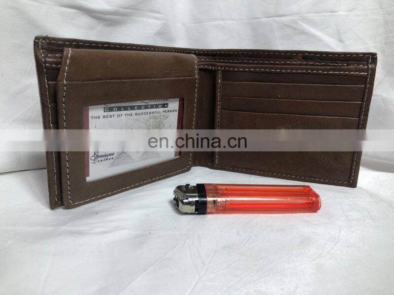 Genuine Cow Hide Leather Bifold Wallet Wholesale Retail Top Grain Original Skin Two Fold RFID OEM ODM