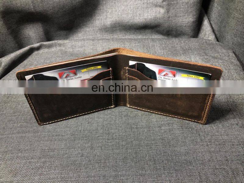 Cow Crazy Horse Leather Wallet for Men Slim Smart Wholesale Retail Customised Custom Logo Vintage Full Grain