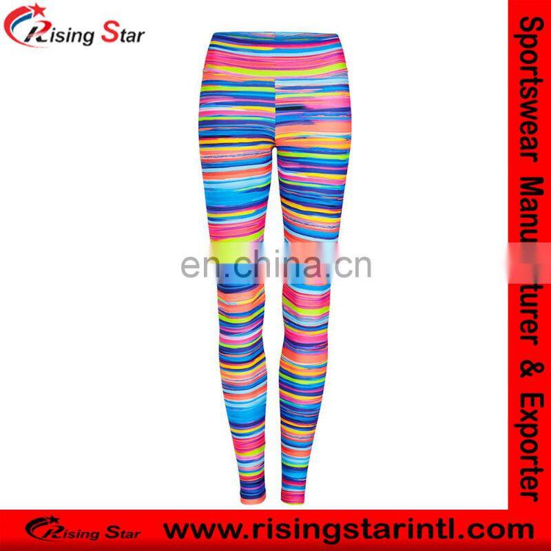 OEM Customized Spandex Rainbow Strips Sublimation Girl Leggings