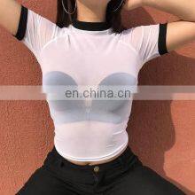 Custom Design Wholesale Price Bamboo t Shirt Sexy Mesh Crop Shits
