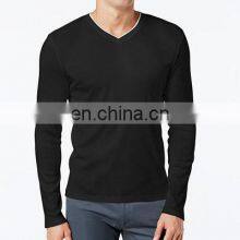 2022 V-neck Black Men's Long Sleeve T-Shirt 100% Cotton Relax Fitted Custom Screen Printing Shirts