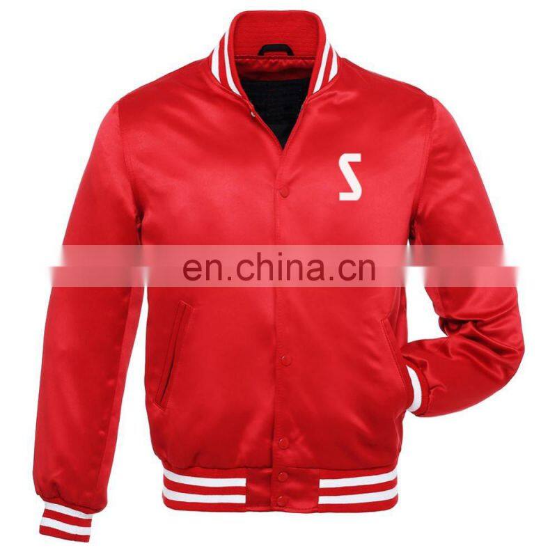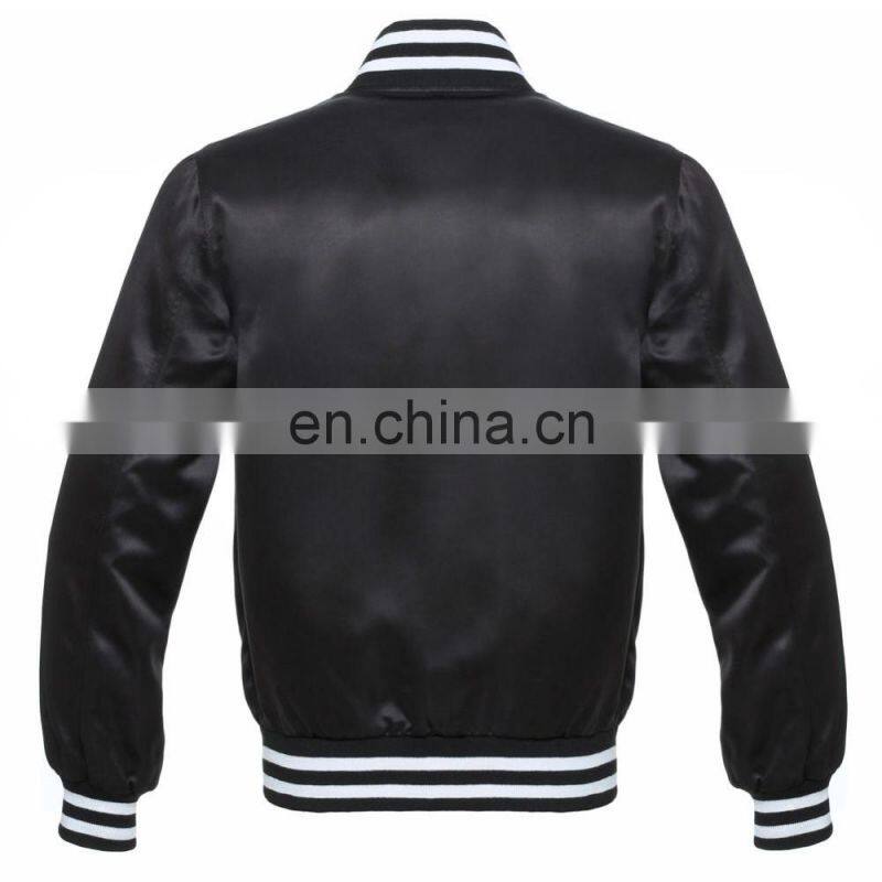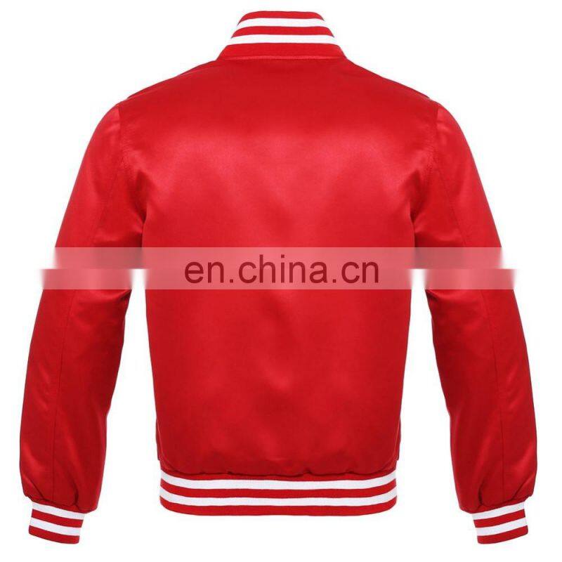 Home > Products > Fashion & Casual Wear > SW-VJ 203 Classic Silk Satin Custom Made Letterman Bomber Jacket for Men Polyester Lining Sublimation Street With Embroidery