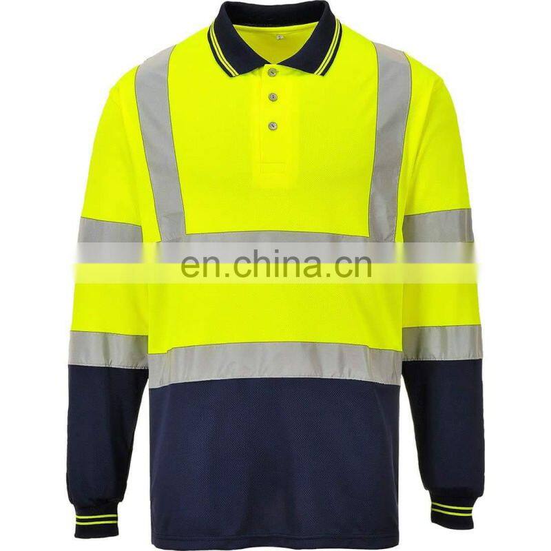 Hi Vis Day Night Long Sleeves Polo Shirt Custom Workwear Shirts Uniforms Shirt With Reflective Stripe Manufacturer