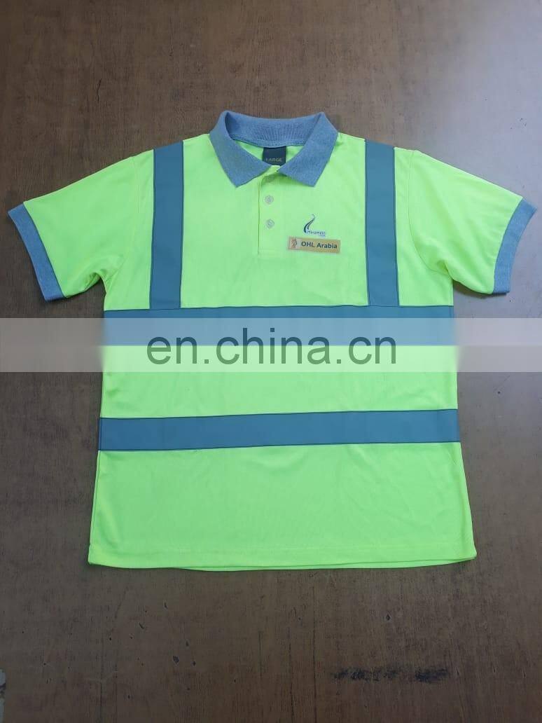 100% Polyester Hi Vis Workwear Shirt With Custom Logo Fluorescent Yellow Safety Uniform Shirts