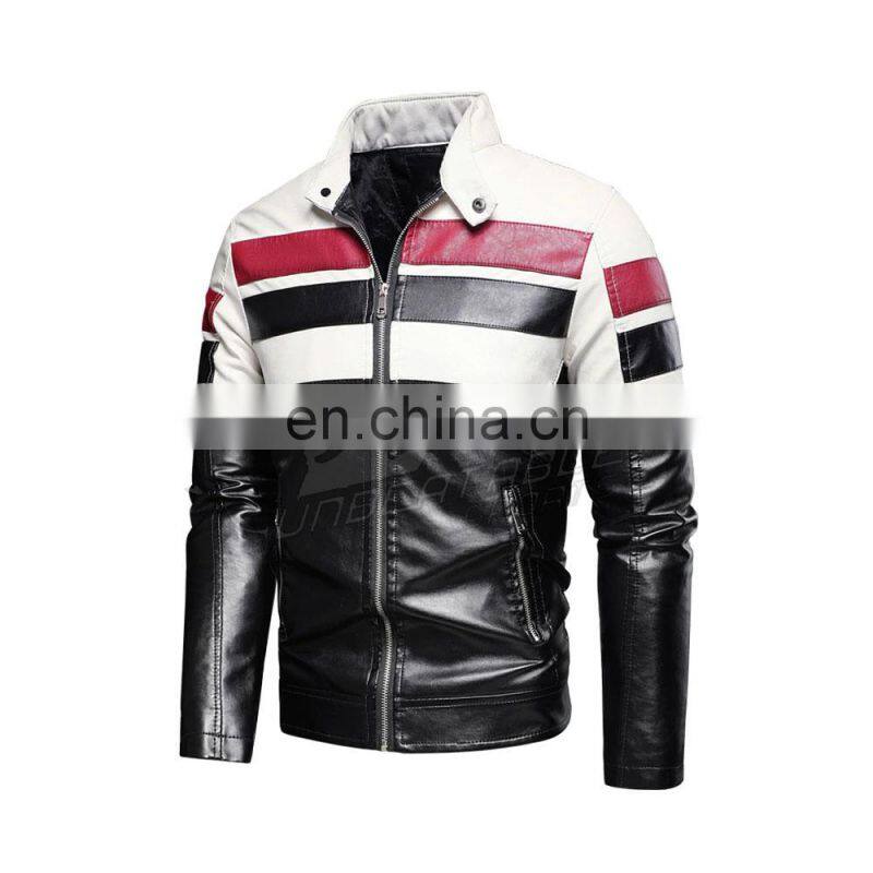 2022 Arrival Unisex Design Color Block Men Genuine Leather Jacket Custom High Quality Men Leather Jacket