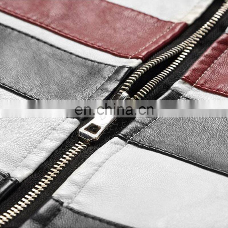 Unisex Design Color Block Men Genuine Leather Jacket Custom High Quality Men Leather Jacket