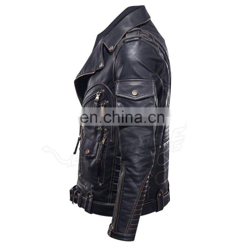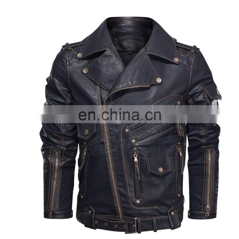 Men's Leather Jacket For Biker Distressed Genuine Lambskin Top Quality Material - Wholesale Price