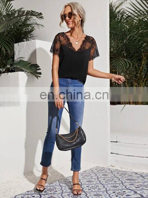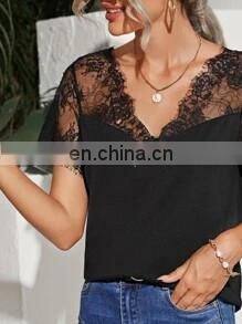 Wholesale Womens Deep V Neck Plain No Brand T Shirts Wholesale Spring Oversize Blank Women Tees Cropped Plain T Shirt