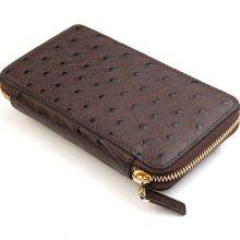 Handmade Leather Goods Ostrich Leather Zipper Mobile Phone Clutch Leather Long Wallet Customization