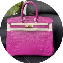 Nile Crocodile Platinum 25 Matte Pure Water Dyed Crocodile Leather Bag European And American Fashion Women's Handbag Handbag Wax Line Half Hand Sewing