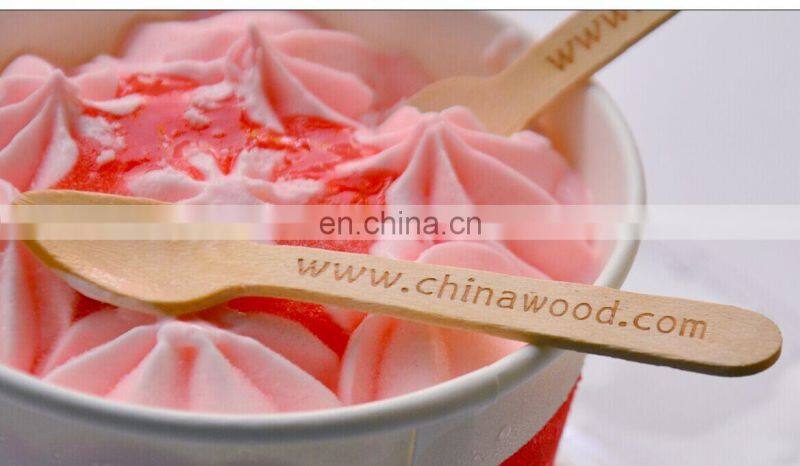 Disposable Eco Friendly Natural Birch Wooden Mini Dessert Small Ice Cream Scoop Spoons With Custom Logo