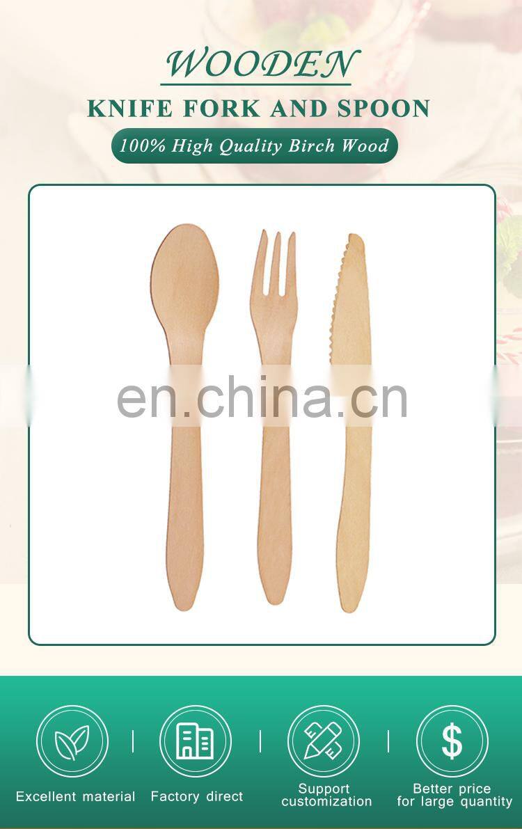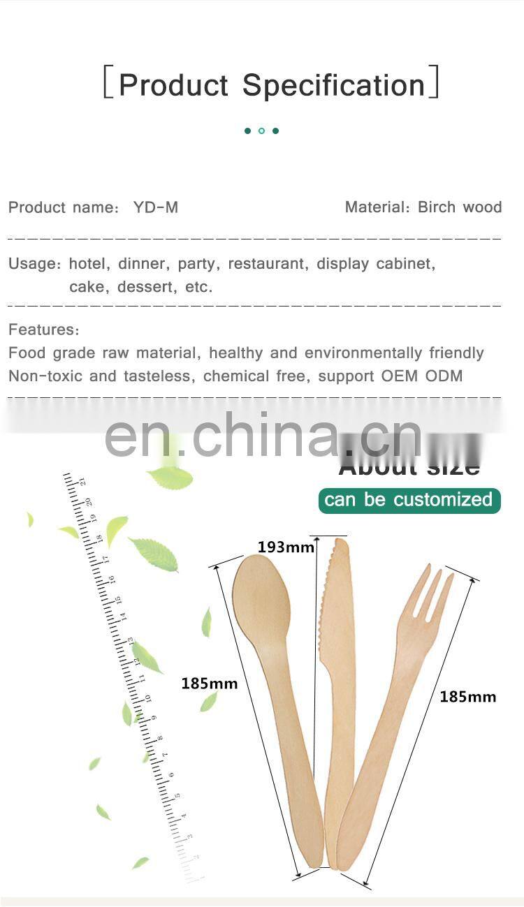 Yada Manufacturer Ecofriendly Cutlery 185mm Disposable Birch Dessert Wooden Knives Forks Spoons Degradable Tableware