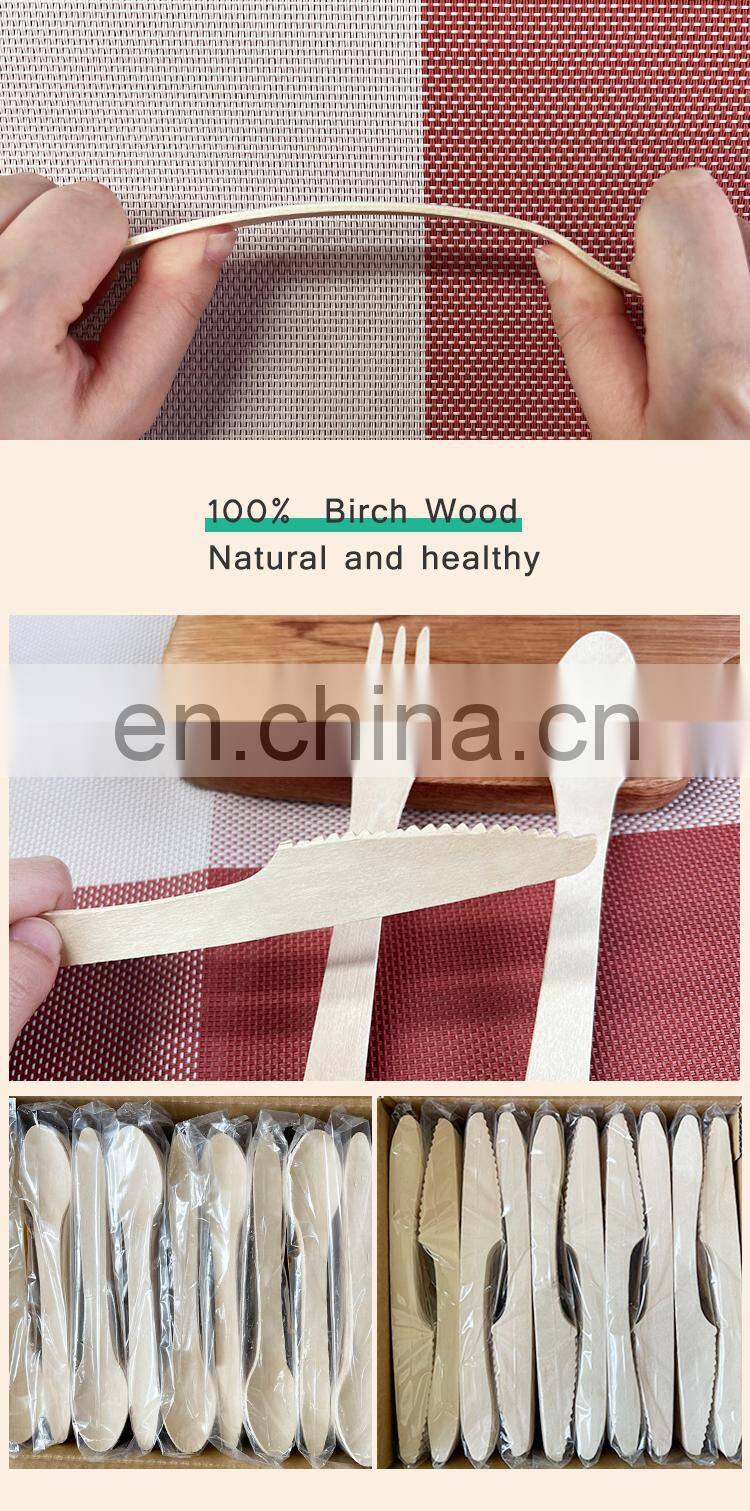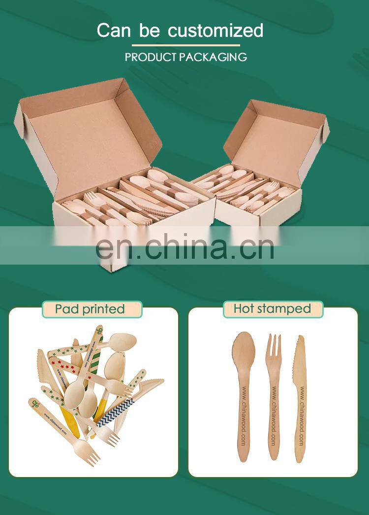 Yada Chinawood Biodegradable Disposable Food Birch Wood Individual Cutlery Set Package Knife Fork and Spoon Set