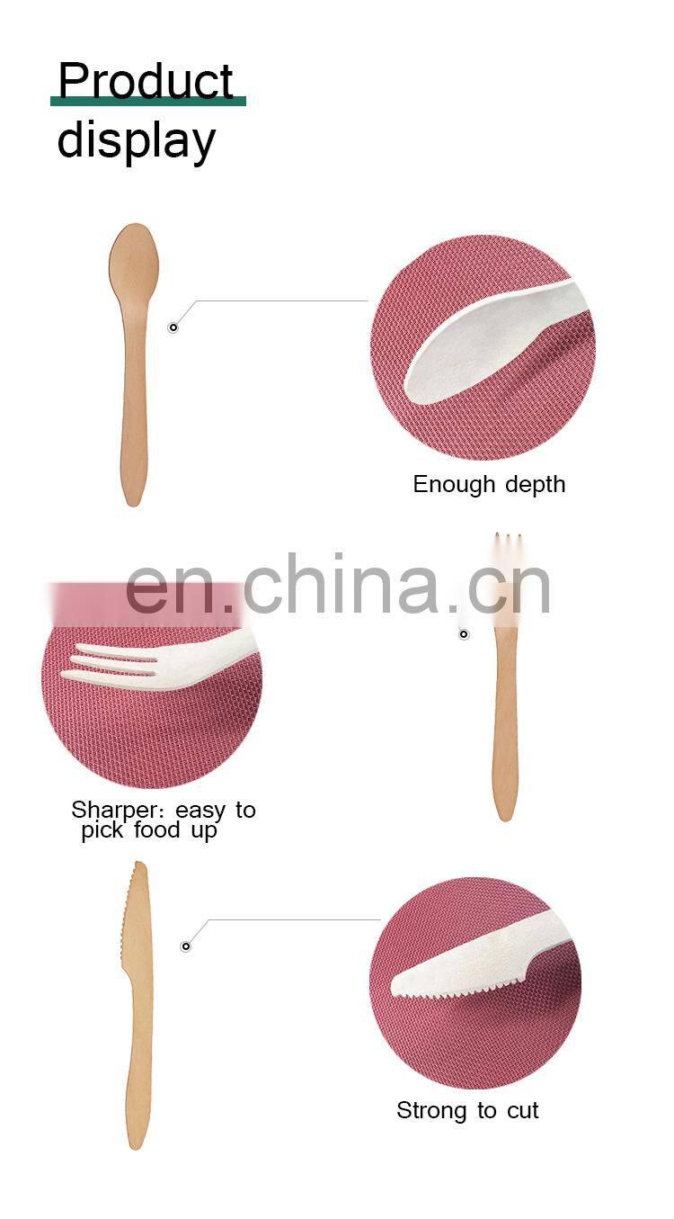 Yada 7.5 Inch 185mm Disposable Wooden Spoon Fork 193mm Knife Biodegradable Disposable Wooden Cutlery