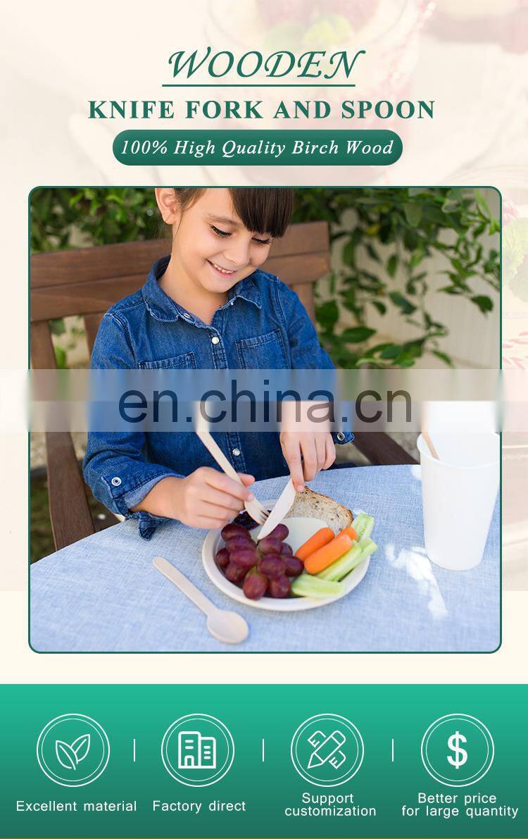 Yada Custom 160mm Eco Friendly Biodegradable Natural Wood Knife Fork Spoon Wood Cutlery Set