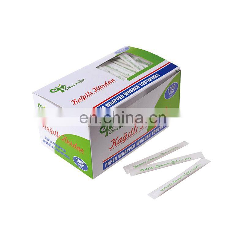 Wholesale Disposable Paper Wrapped Individual Packing Birch Wooden Picks Toothpick