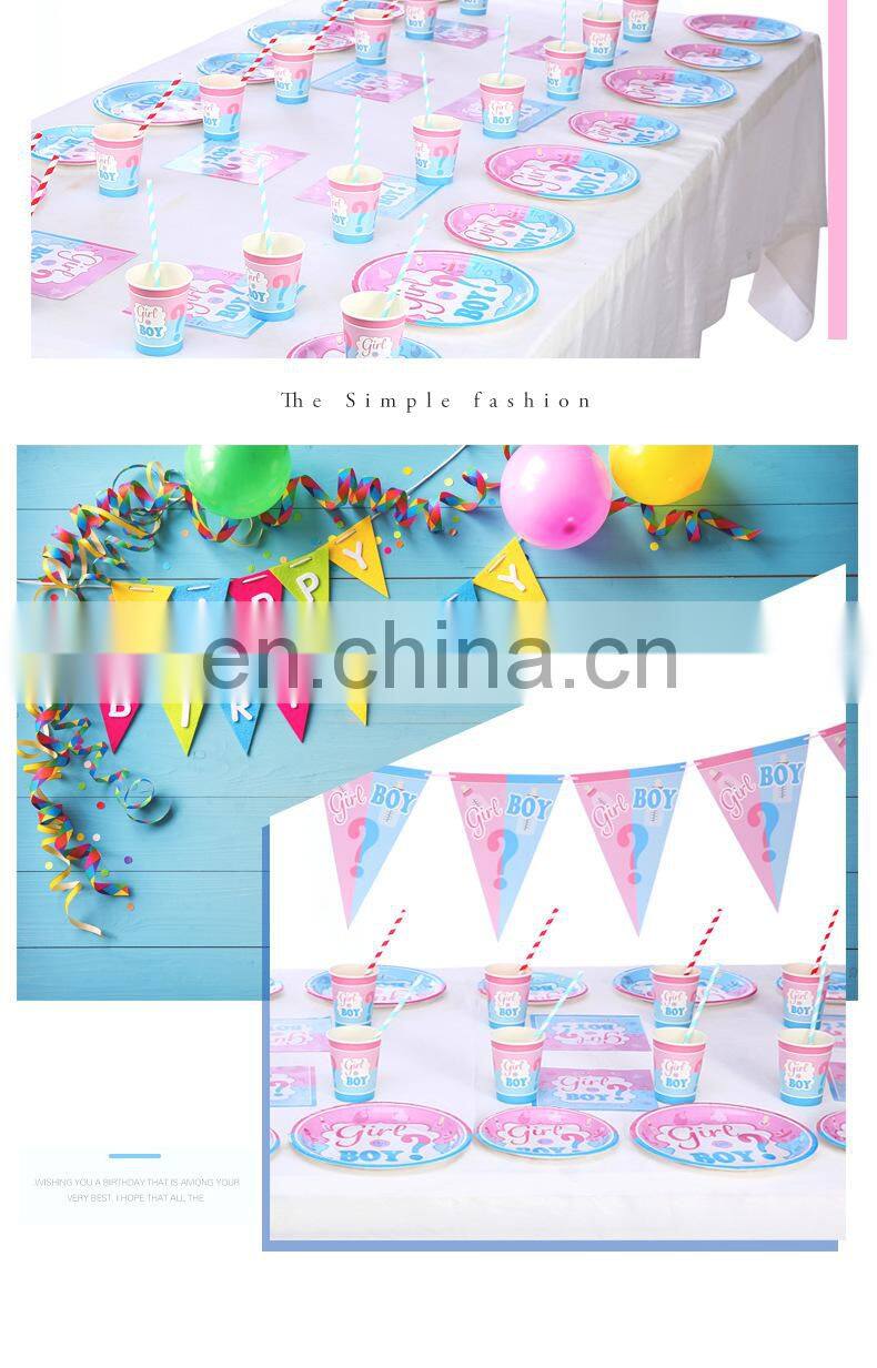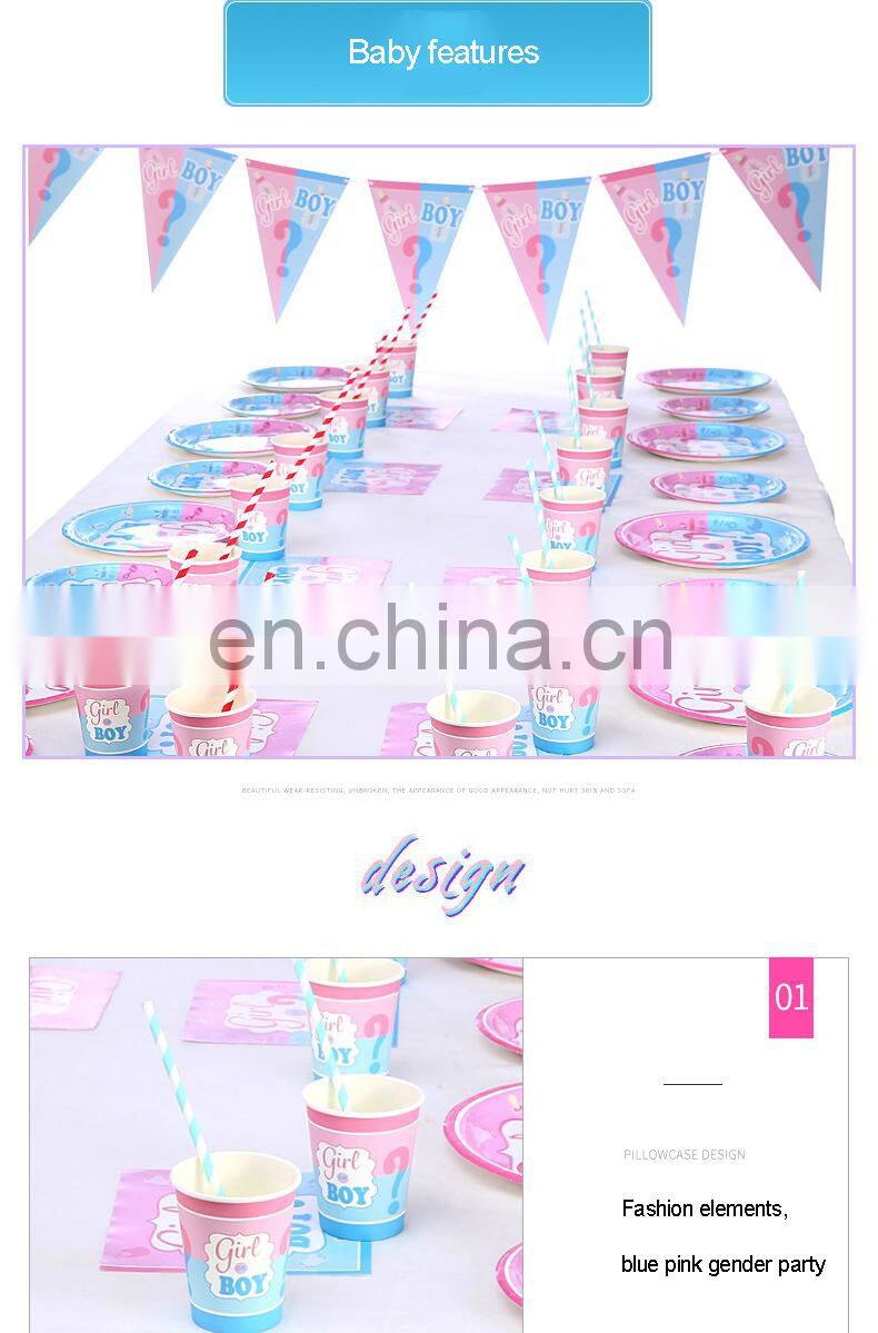 Disposable Blue Kiddies Theme Birthday Party Disposable Napkin Cutlery Paper Set Plate Tray Cup