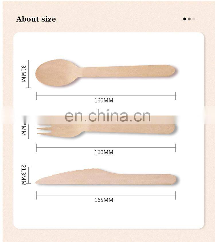 Disposable 160mm Wooden Cutlery Camping Fork and Knife Spoon Ensemble Cuillere Fourchette Couteau