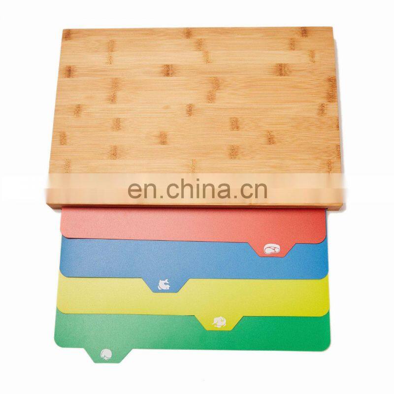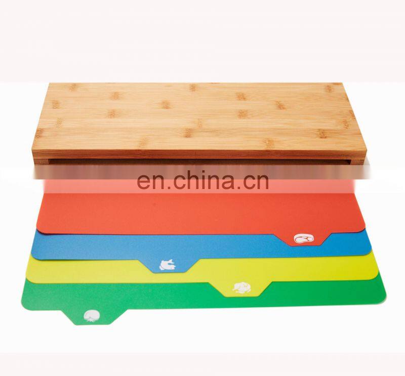 Kitchen Creative Design Rectangular Bamboo Cutting Board And 4 Color-coded