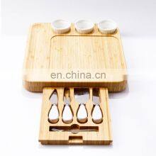 Round Shape Home Kitchen Tableware Bamboo Cheese Board With Three Ceramic Bowl And Cutlery Set Kitchen Chopping Blocks