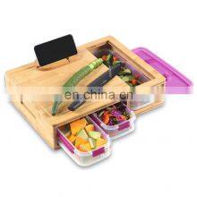 Extra Large 3 Trays Drawers Containers Trays Bamboo Cutting Board Set With Locking LID For Easy Storage And Transport