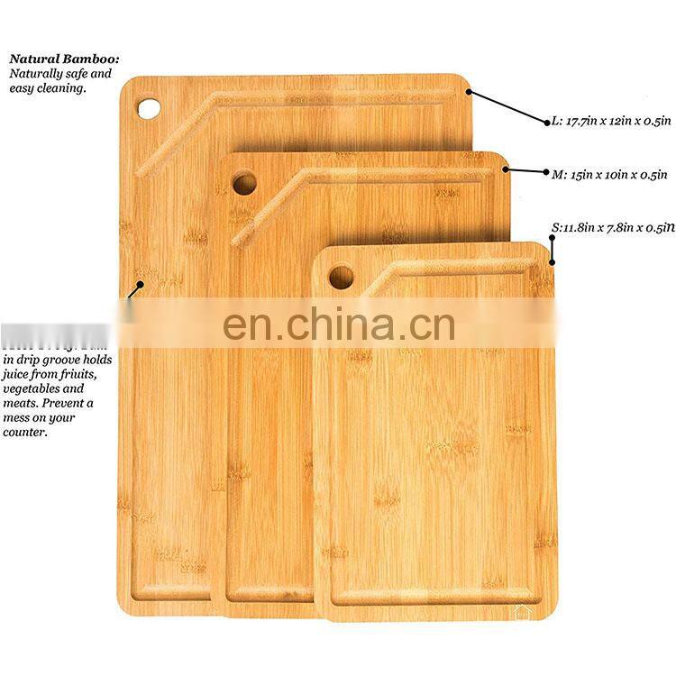 Customized Eco Friendly Multifunction Organic Bamboo Cutting Board Set Of 3