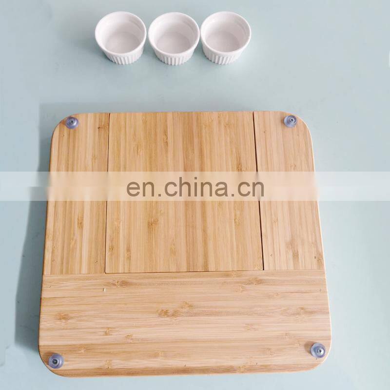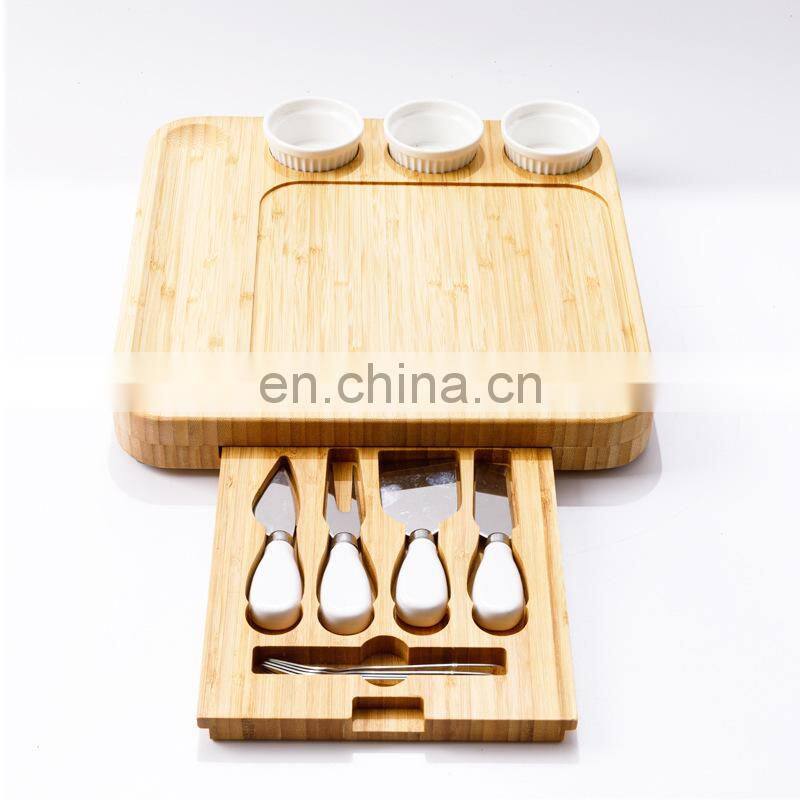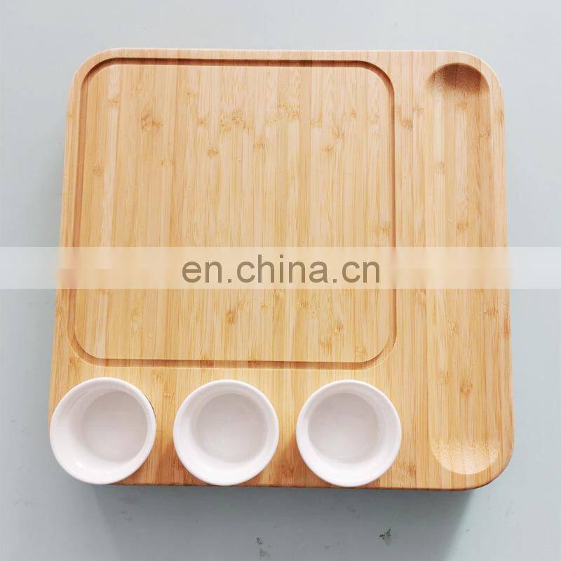 Hot Selling Eco Friendly Organic Bamboo Cheese Board With 3 Ceramic Bowl