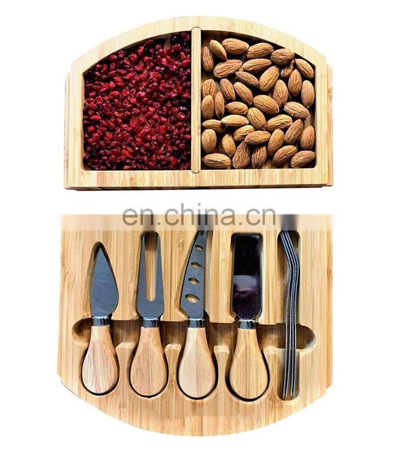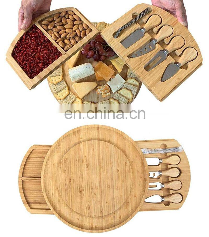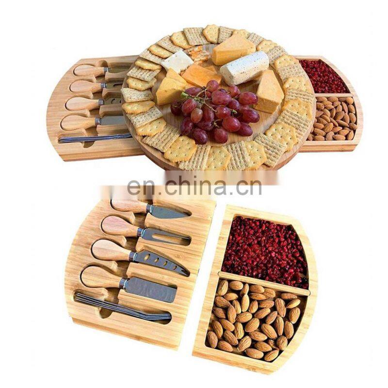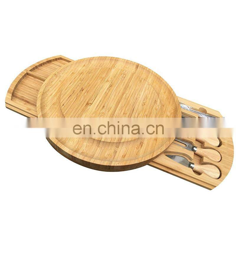Wholesale Natural Eco Friendly Wood Bamboo Cutting Cheese Boards Slide Out Drawers With 4 Knifes Set