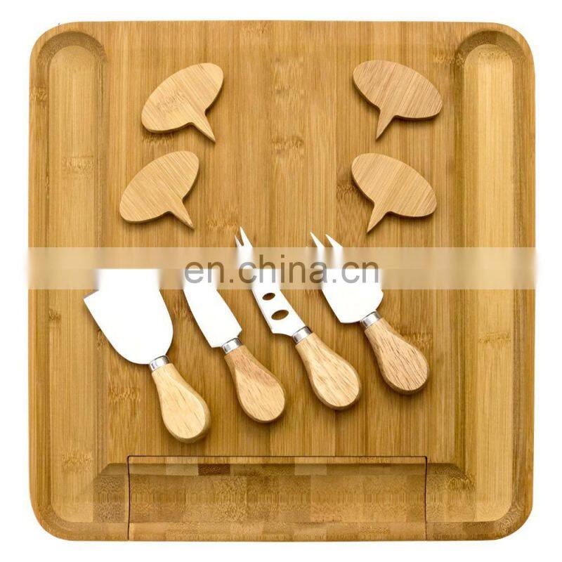 Wholesale High Quality Organic Charcuterie Square Cutting Bamboo Cheese Board And Knife Cutlery Set